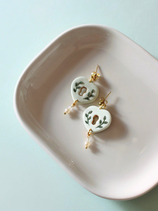 Sold outTea Green Heart Locket Earrings